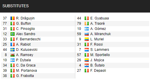 * Danh sách dự bị trận Juventus vs Atalanta, 00h30 ngày 17/12: VĐQG Italia