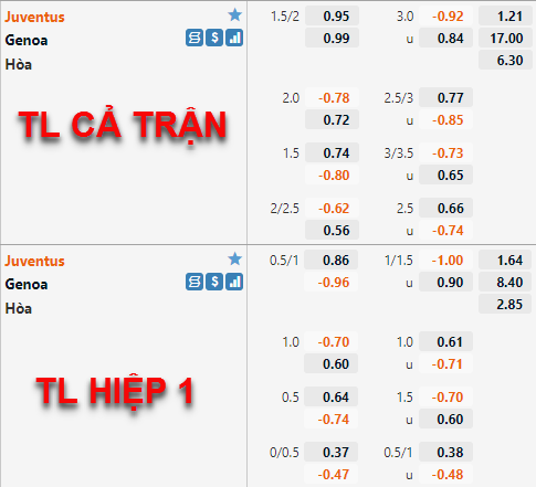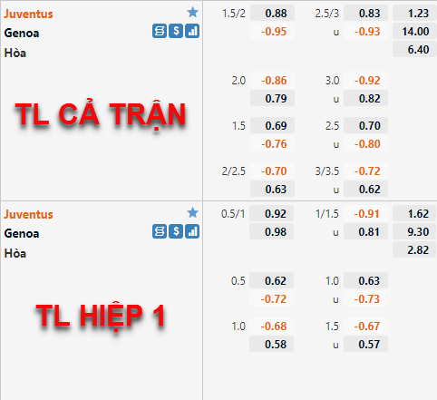 Juventus vẫn duy trì tỷ lệ chấp chính ở mức 1 3/4 nhưng hiện tại điểm ăn của cửa trên đã được điều chỉnh tăng tương đối nhiều so vơi thời điểm chúng tôi cập nhật trước đây. Bên phía tỷ lệ tài xỉu có nhưng diễn biến trái chiều khi có xu hướng tăng điểm, mốc 3 hoà hiện tại đã được đẩy lên là mốc chính của trận đấu thay cho mức 2 3/4 trước đây.