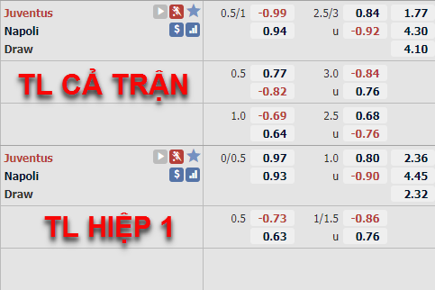Juventus -3/4 cả trận