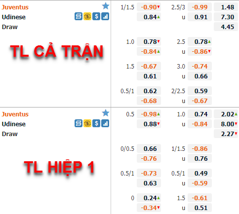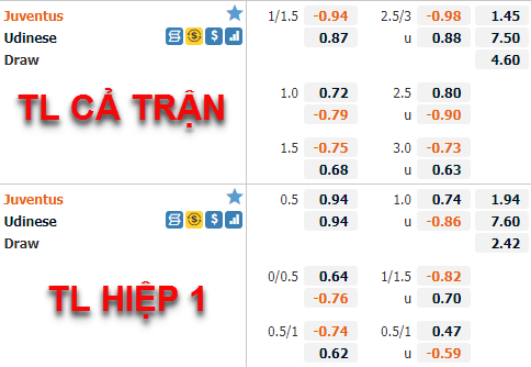 Tham khảo: Juventus -1/2 Hiệp 1