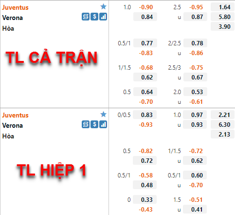 Tham khảo: Juventus -1/4 Hiệp 1