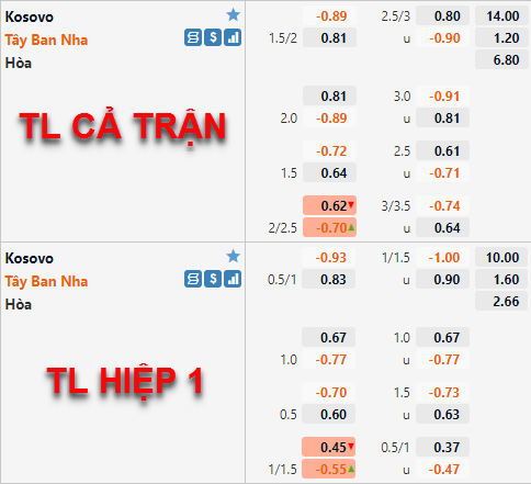 Mức chấp 1 3/4 của ĐT Tây Ban Nha đang dần thay thế cho mức chấp 2 hoà ở lần chúng tôi cập nhật trước. Bên phía tỷ lệ tài xỉu của trận đấu mức 3 hoà cũng đang dần thay thế mốc 2 3/4 trước đây làm mốc tỷ lệ chính của trận đấu.