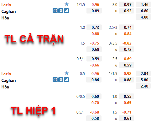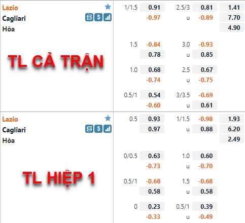 Lazio tiếp tục duy trì tỷ lệ chấp 1 1/4 như thời điểm chúng tôi cập nhật sáng nay nhưng điểm ăn của cửa trên đã được nhà cái điều chỉnh giảm. Trong khi đó tỷ lệ tài xỉu của trận đấu có những biến động rõ rệt hơn khi mốc 3 hoà trước đây đã được thay thế bằng mốc 2 3/4 hiện tại.