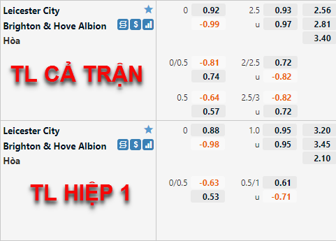 Kèo châu Á vẫn ở mức Leicester City chấp về giá. Dù điểm ăn cho họ có giảm thì điều đó vẫn chưa phải bước đột phá, nhất là khi "bầy cáo" được chơi ở King Power. Việc vắng quá nhiều trụ cột khiến Leicester trở thành lựa chọn không đáng tin cậy.