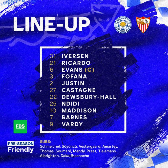 Leicester: Stolarczyk; Justin, Evans, Soyuncu, Thomas; Dewsbury-Hall, Ndidi, Maddison; Barnes, Vardy, Daka