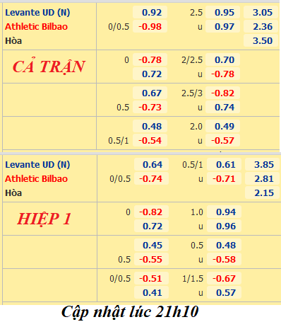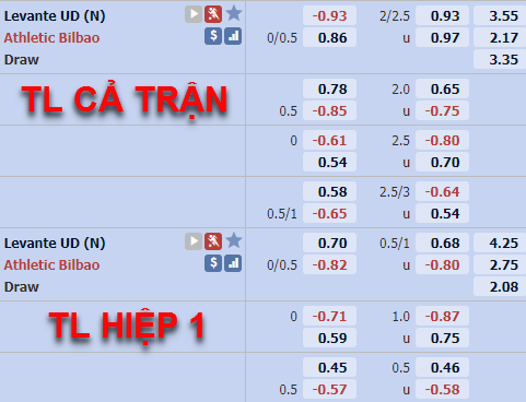 AEGoal.net chốt kèo bóng đá trực tiếp trận Levante vs Bilbao diễn ra lúc 22h00 ngày 12/07 trong khuôn khổ giải VĐQG Tây Ban Nha sau khi dựa trên tính toán, chuyển động về kèo châu Á và đội hình ra sân của 2 đội.