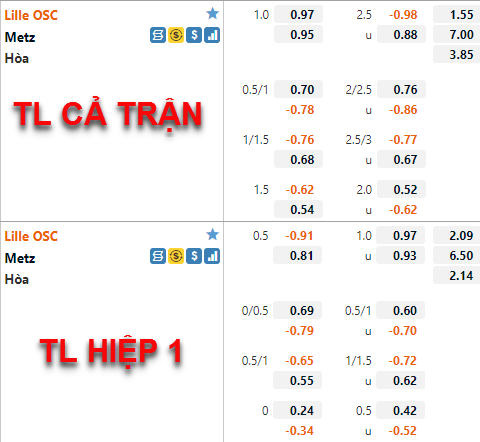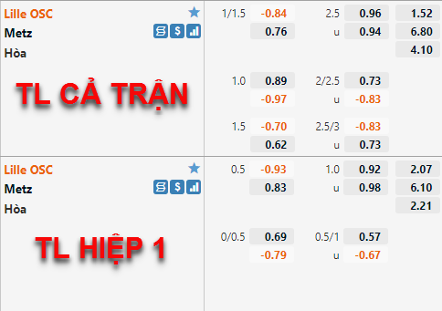 Tham khảo: Lille -1/2 Hiệp 1