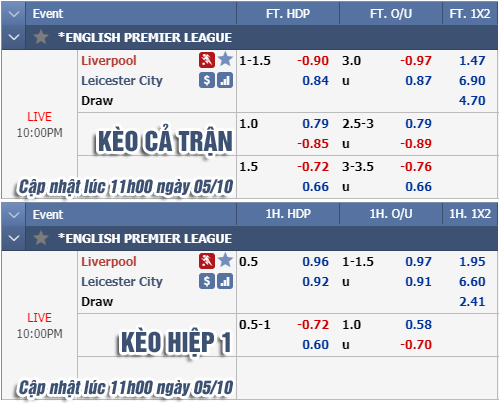 Liverpool gặp đối thủ khó chịu đang có phong độ cao Leicester. Giới đầu tư vì thế hoài nghi vào khả năng giành chiến thắng dễ dàng của The Kop. Tỷ lệ chính chấp 1 1/4 với lợi điểm cân bằng hồi đầu phiên đã bị điều chỉnh xuống còn chấp 1 hòa là minh chứng rõ ràng nhất.