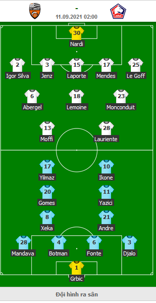 - Trận đấu: Lorient vs Lille (Vòng 5 - VĐQG Pháp)