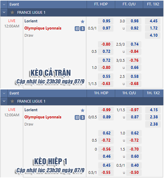 * Chốt kèo trận Lorient vs Lyon(00h00 ngày 08/9)
