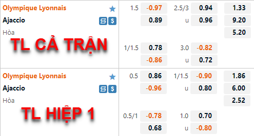 Trên sàn giao dịch châu Á không chứng kiến đà tăng điểm của Lyon khi kèo chấp 1 1/2 vẫn được duy trì nhưng lợi điểm có phần bỏ sâu hơn đầu phiên. Trong khi đó, dường như Ajaccio không được đánh giá cao cho khả năng ghi bàn nên chỉ số bàn thắng cả trận chỉ dừng lại với mốc 2 3/4 cùng lợi điểm cân bằng giữa các lựa chọn đối lập. Thế nên, rất khó chờ đợi vào kịch bản tưng bừng bàn thắng.