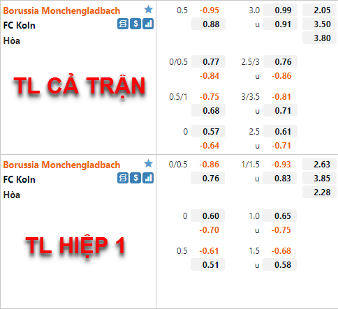 THAM KHẢO: FC Koln (+1/2) cả trận