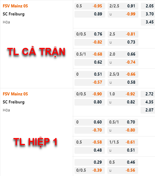 Những diễn biến trên sàn giao dịch đang mang lại thuận lợi cho lựa chọn cửa trên và xỉu. Lựa chọn cửa trên tương đối hợp lý khi Mainz đang duy trì được phong độ tốt, nhưng phía bên kia Freiburg cũng thi đấu tương đối ổn định trên sân khách nên lựa chọn cửa xỉu có lẽ sẽ là phương án tốt hơn ở trận đấu này
