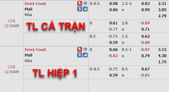 AEGoal.net chốt kèo trực tiếp trận Mali vs Bờ Biển Ngà diễn ra lúc 23h00 ngày 08/7 sau khi dựa trên tính toán, chuyển động về kèo châu Á và đội hình ra sân của 2 đội.