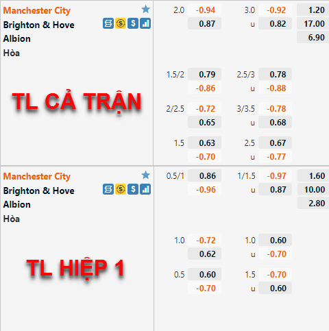 Ở thời điểm hiện tại mức chấp chính 2 hoà của Man City trước đã được nhà cái châu Á kéo xuống mức 1 3/4. Trong khi mốc tài xỉu lại có diễn biến trái chiều khi mức 3 hoà được duy trì là mức chính của trận đấu những điểm ăn của cửa tài đã có xu hướng giảm điểm.