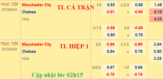 Sàn châu Á cũng ghi nhận đà tăng giá của Man City, khi điểm ăn ở kèo chấp 1 hòa của họ xuống thấp dần đẩy tỷ lệ chính lên mức chủ chấp 1 1/4. Trong bối cảnh tài xỉu có phần nhích lên ở điểm ăn cho cửa tài thì dịch chuyển handicap như vậy là tín hiệu tích cực với The Citizens.