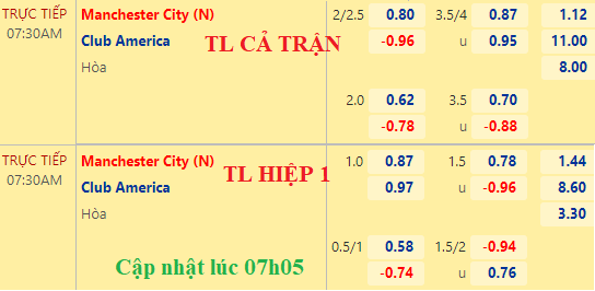 Việc kèo hiệp 1 The Citizens cũng đã chấp tới 1 hòa cho thấy khả năng họ hủy diệt Club America là rất cao. Không khó hiểu cho điều này khi Pep tung vào sân khá nhiều ngôi sao như De Bruyne, Mahrez, Bernardo Silva hay Cancelo.