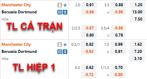 Diễn biến trên sàn giao dịch châu Á thời gian vừa qua cho thấy thị trường không hoàn toàn nghiêng cụ thể về dự đoán nào cho trận đấu này. Những theo quan điểm của người viết Man City vẫn là một lựa chọn đáng chú ý khi đội chủ nhà vẫn duy trì được mức chấp 2 hoà, rõ ràng đây là mức chấp rất cao của Man City trong khi những thống kê kỹ thuật gần đây của Dortmund tương đối tốt.