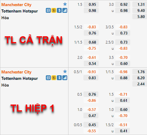 THAM KHẢO: Man City (-1 1/2) cả trận