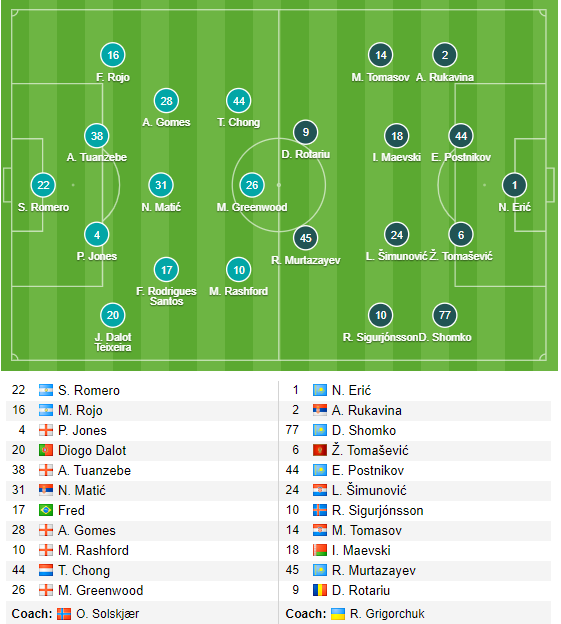 - MU: Luke Shaw, Eric Bailly, Paul Pogba, Martial và Daniel James không thể góp mặt vì chấn thương; trong khi Jesse Lingard và Diogo Dalot vẫn chưa chắc chắn ra sân.