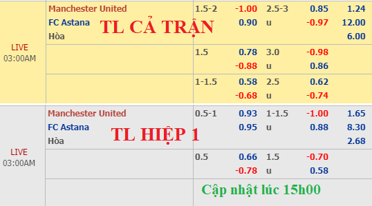 AEGoal.net chốt kèo trực tiếp trận Man Utd vs Astana diễn ra lúc 02h00 ngày 20/9 sau khi dựa trên tính toán, chuyển động về kèo châu Á và đội hình ra sân của 2 đội.