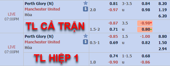 AEGoal.net chốt kèo trực tiếp trận Man Utd vs Perth Glory diễn ra lúc 18h00 ngày 13/7 sau khi dựa trên tính toán, chuyển động về kèo châu Á và đội hình ra sân của 2 đội.