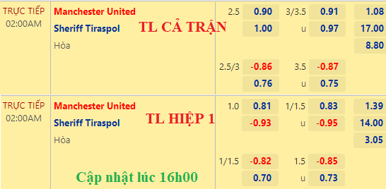 AEGoal chốt kèo bóng đá trực tiếp trận Man Utd vs Sheriff Tiraspol diễn ra lúc 02h00 ngày 28/10/2022 trong khuôn khổ vòng bảng Europa League sau khi dựa trên tính toán, chuyển động về kèo châu Á và đội hình ra sân của 2 đội.