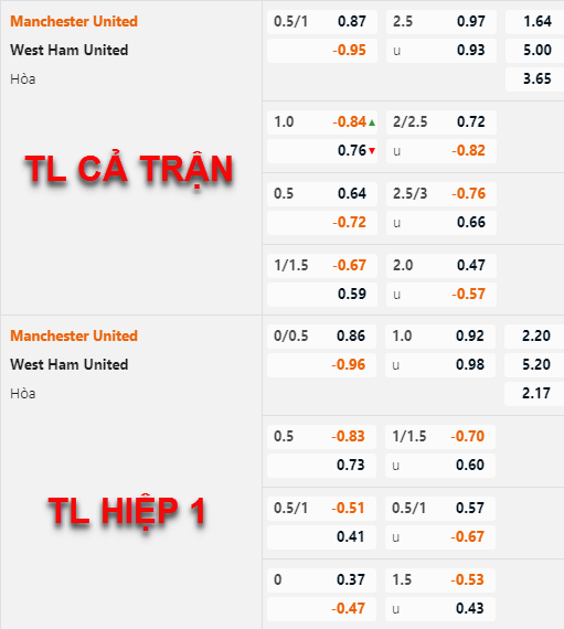 Tỷ lệ chấp của Man Utd có xu hướng giảm điểm thời gian vừa qua, hiện tại tỷ lệ chấp chính của đội chủ nhà đã được nhà cái kéo xuống mức 3/4 thay cho mức 1 hoà ở lần chúng tôi cập nhật trước, tương tự ở bên phía cửa tỷ lệ tài xỉu cũng có diễn biến giảm điểm. Mốc 2 1/2 vẫn được duy trì là mốc chính nhưng điểm ăn của cửa xỉu đã được điều chỉnh giảm rõ rệt.