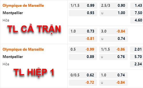 AEGoal chốt kèo bóng đá trực tiếp trận Marseille vs Montpellier diễn ra lúc 02h00 ngày 01/4 trong khuôn khổ giải VĐQG Pháp sau khi dựa trên tính toán, chuyển động về kèo châu Á và đội hình ra sân của 2 đội.