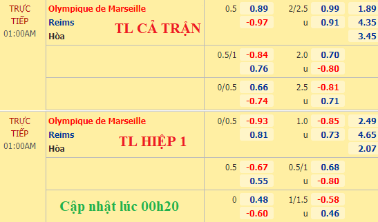 Chốt kèo trực tiếp trận Marseille vs Reims (01h00):