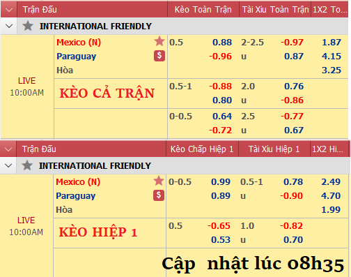 - Mexico thắng 87,5% theo kèo châu Á khi đối đầu Paraguay.