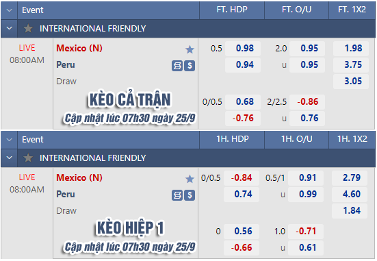 * Chốt kèo trận Mexico vs Peru (08h00 ngày 25/9)