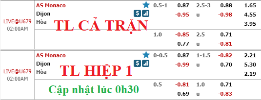 - Ở 2 mùa giải gần nhất, Monaco đã thắng 3/4 cuộc đụng độ Dijon, trong đó có 2 trận thắng tỷ lệ châu Á.