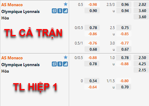 Dù tung ra đội hình mạnh nhất ở hiện tại, thế nhưng rõ ràng so với Lyon, Monaco vẫn đang ở thế bị đánh giá thấp hơn. Trên sàn giao dịch châu Á, việc kèo chấp của họ đã giảm từ -1/2 xuống -1/4 cũng thể hiện sự nghi ngờ đó.