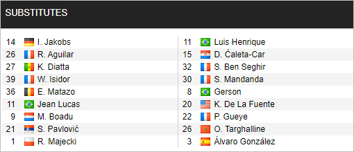 * Danh sách dự bị trận Monaco vs Marseille, 2h00 ngày 12/9: VĐQG Pháp