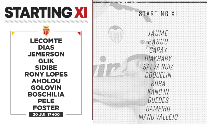 Đôi bên đều tung vào sân đội hình khá mạnh, với Monaco là Golovin, Glik, Boschilia... còn với Valencia là những Gameiro, Guedes hay Garay. Qua đây có thể thấy đôi bên hoàn toàn nghiêm túc ở trận cầu ngày hôm nay. Với đội hình và tỷ lệ như vậy thì nên tin vào Valencia và xỉu!