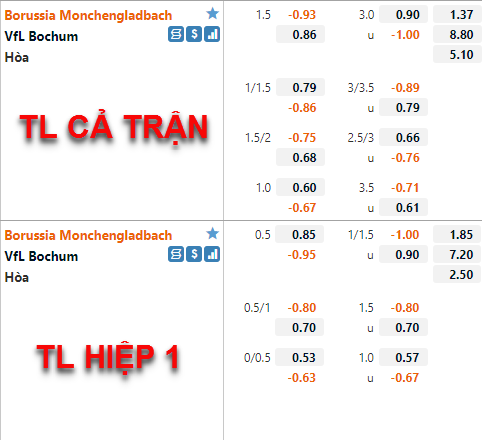 Tỷ lệ chấp chính của Monchengladbach vẫn được duy trì ở mức 1 1/2 như thời điểm chúng tôi cập nhật sáng nay, điểm ăn của cửa trên có xu hướng giảm điểm nhưng không nhiều. Trong khi đó, bên phía tỷ lệ tài xỉu mốc 3 vẫn là mốc chính của trận đấu nhưng điểm ăn của cửa xỉu lại có dấu hiệu giảm điểm.
