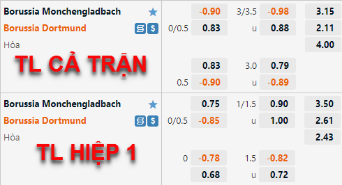 AEGoal chốt kèo bóng đá trực tiếp trận Monchengladbach vs Dortmund diễn ra lúc 02h30 ngày 12/11 trong khuôn khổ giải VĐQG Đức sau khi dựa trên tính toán, chuyển động về kèo châu Á và đội hình ra sân của 2 đội.
