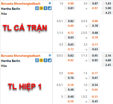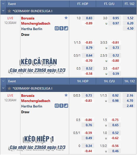 * Chốt kèo trận M'gladbach vs Hertha Berlin (00h30 ngày 13/03)