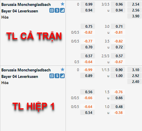 Với nhiều thiếu vắng trong đội hình, không quá ngạc nhiên khi Monchengladbach đang hoàn toàn thất thế dù được chơi trên sân nhà. Trên sàn giao dịch châu Á, việc nhà cái đưa Leverkusen lên chấp 1/4 cũng cho thấy đành giá tích cực hơn nhiều cho đội khách, vì vậy mà niềm tin cho họ lại càng lớn hơn.