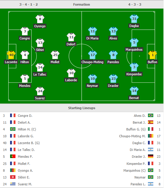 PSG (3-4-3): Areola; Kimpembe, Bernat, Marquinhos; Paredes, Verratti, Kurzawa, Dagba; Diaby, Alves; Cavani.