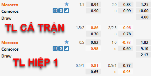 CHỐT KÈO: Morocco -1 1/2 cả trận