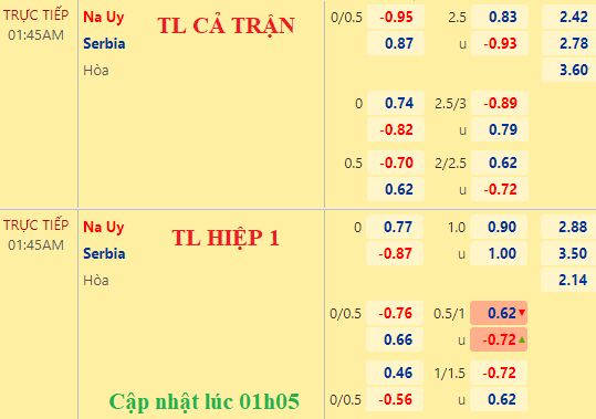 Na Uy vẫn duy trì kèo chấp đồng banh và điểm ăn đã bớt bỏ sâu. Trong khi đó, đáng nói thì tài xỉu của trận đấu được kéo lên hẳn 2 1/2, và lợi nhuận ở cửa tài rất thấp, còn gần chạm mức tài xỉu 2 3/4.