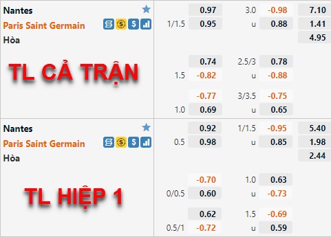 Tung ra sân đội hình mạnh nhất, thế nhưng những diễn biến trên thị trường vẫn không có thay đổi tích cực nào với PSG khi mà họ vẫn chỉ giữ kèo -1 1/4 cho vị khách đến từ thủ đô. Với diễn biến như vậy, rõ ràng là sẽ khó đặt niềm tin cho họ.