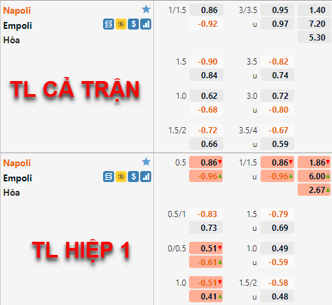 Napoli -1 1/4 cả trận