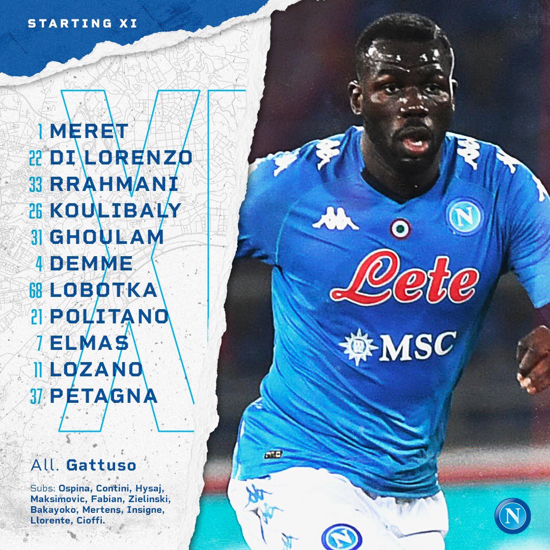 - Napoli (4-2-3-1): Ospina; Mario Rui, Maksimovic, Manolas, Di Lorenzo; Bakayoko, Diego Demme; Politano, Elif Elmas, Insigne; Fernando Llorente.