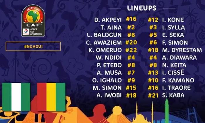 ĐỘI HÌNH XUẤT PHÁT Nigeria vs Guinea (21h30):