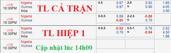 AEGoal.net chốt kèo trực tiếp trận Nigeria vs Guinea diễn ra lúc 21h30 ngày 26/6 sau khi dựa trên tính toán, chuyển động về kèo châu Á và đội hình ra sân của 2 đội.