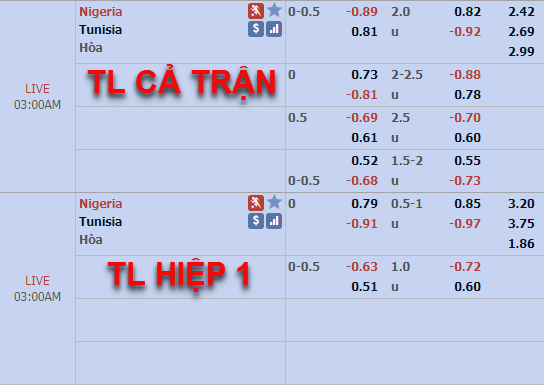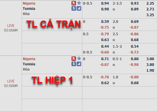 Tỷ lệ của trận đấu trên sàn giao dịch châu Á vẫn đang là kèo chấp 1/4 của đại bàng xanh Nigeria như thời điểm chiều qua nhưng mức điểm ăn của cửa trên đã được điều chỉnh giảm khá nhiều ở thời điểm hiện tại. Ở bên phía tỷ lệ tổng bàn thắng cũng đã có những thay đổi đáng kể, tỷ lệ chính 2 hoà đã được thay thế bằng tỷ lệ 2 1/4.