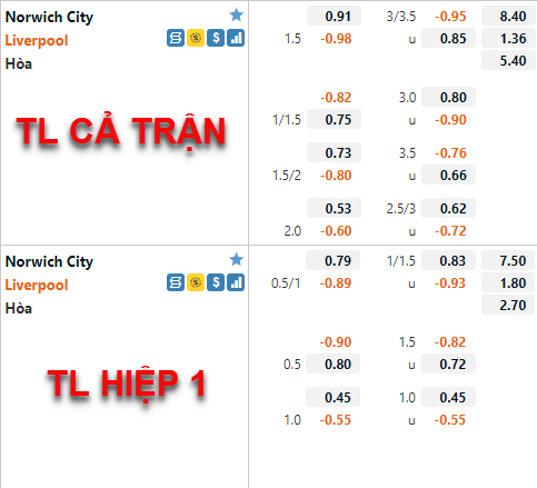 * Chốt kèo trận Norwich vs Liverpool (23h30 ngày 14/8)